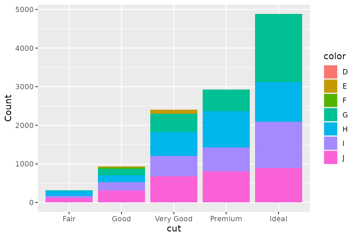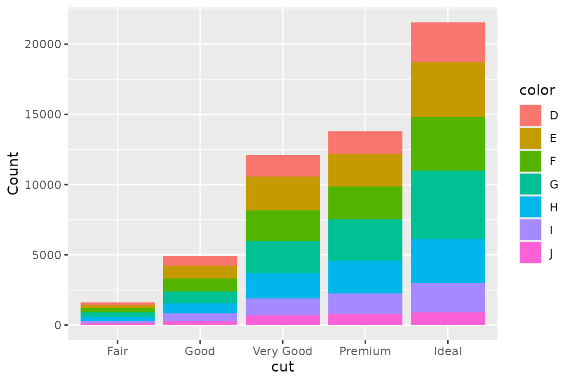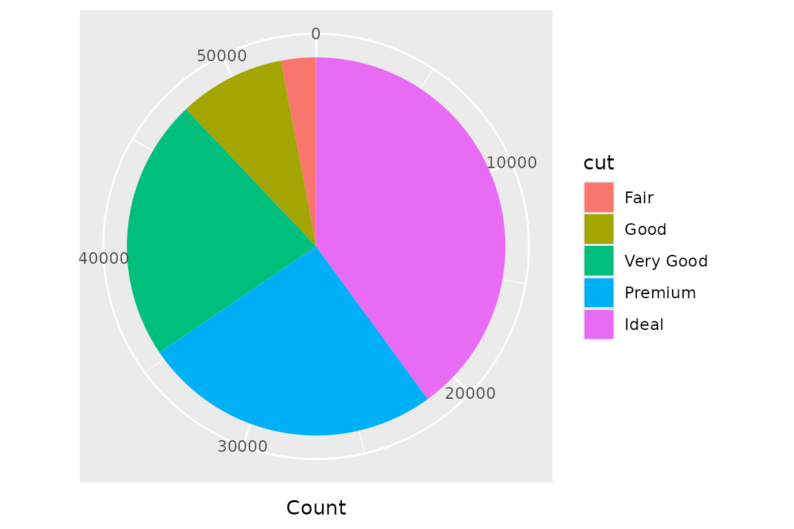 A pie chart is a stacked bar chart in polar coordinates. Map a count
