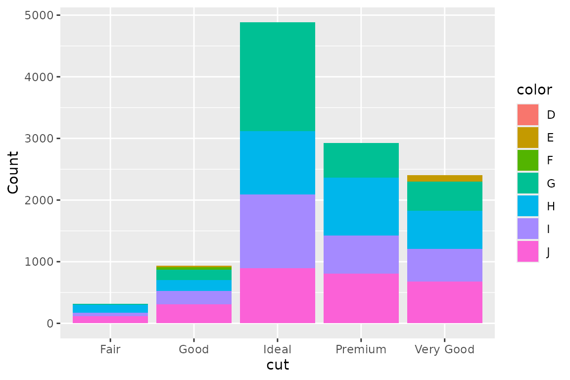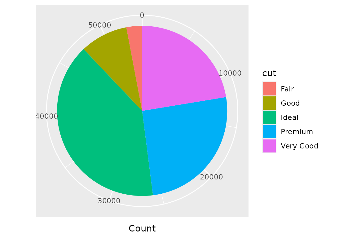A pie chart is a stacked bar chart rendered in polar coordinates: