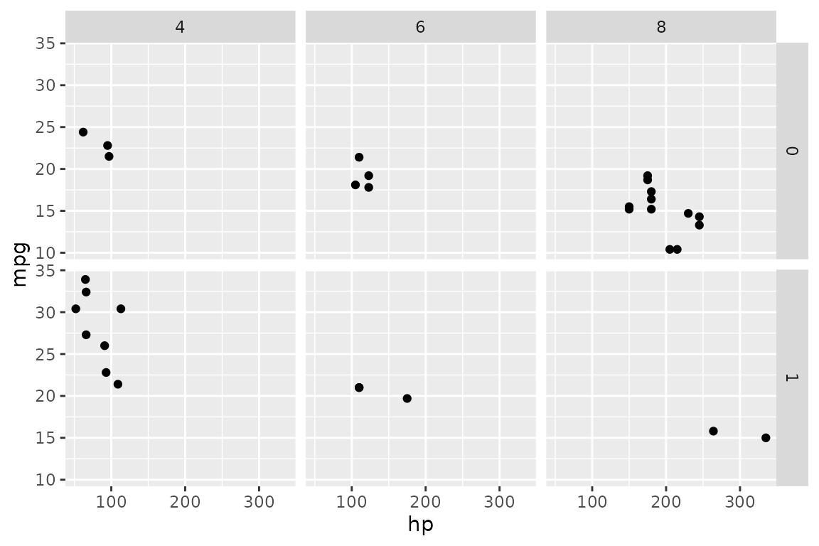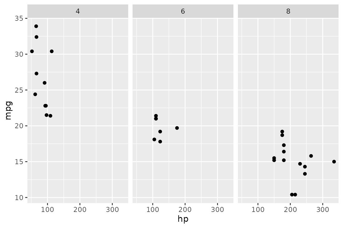 Faceting generates small multiples — separate panels for each unique value of a column. A single facet expression produces horizontal panels by default: